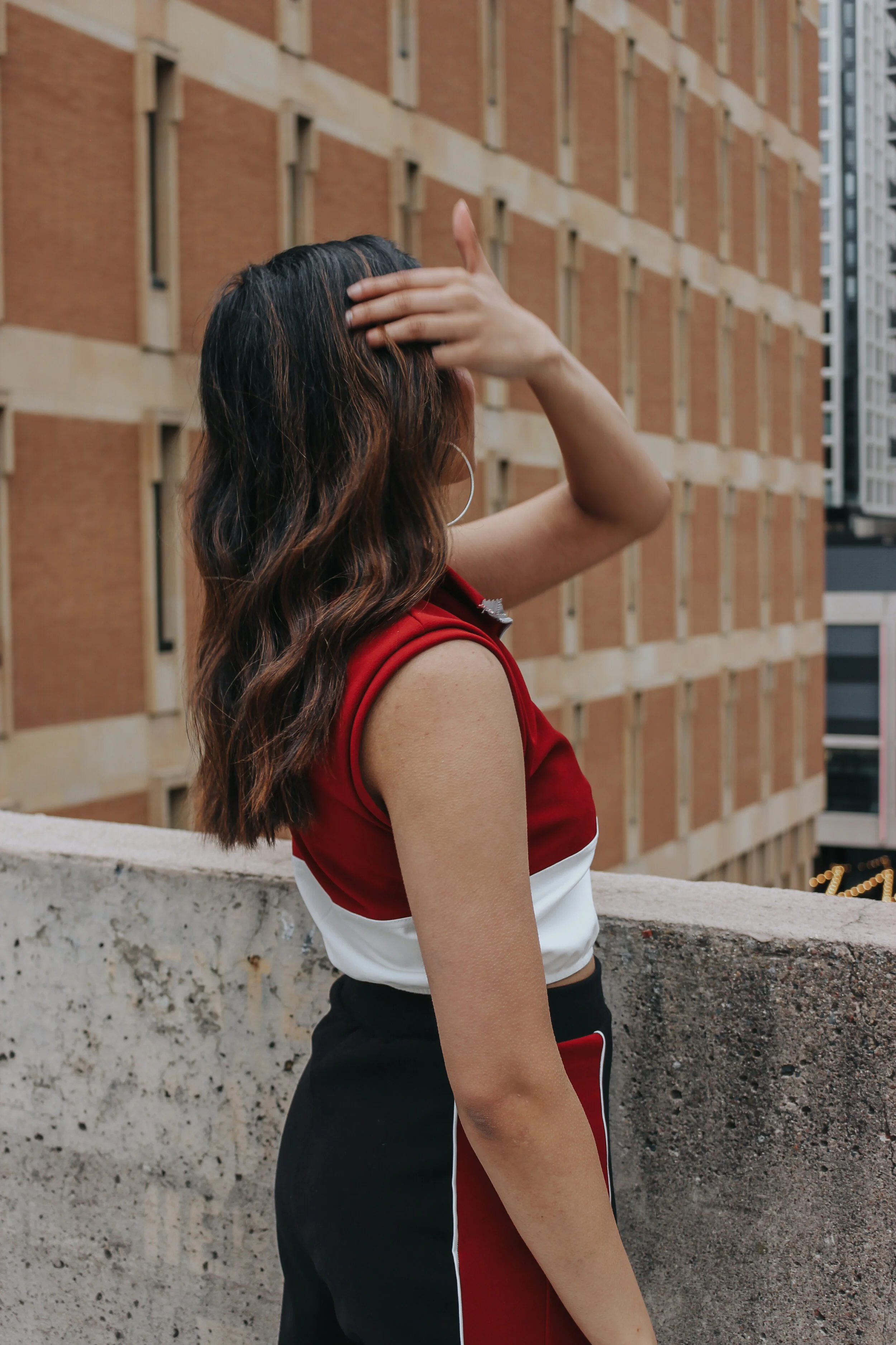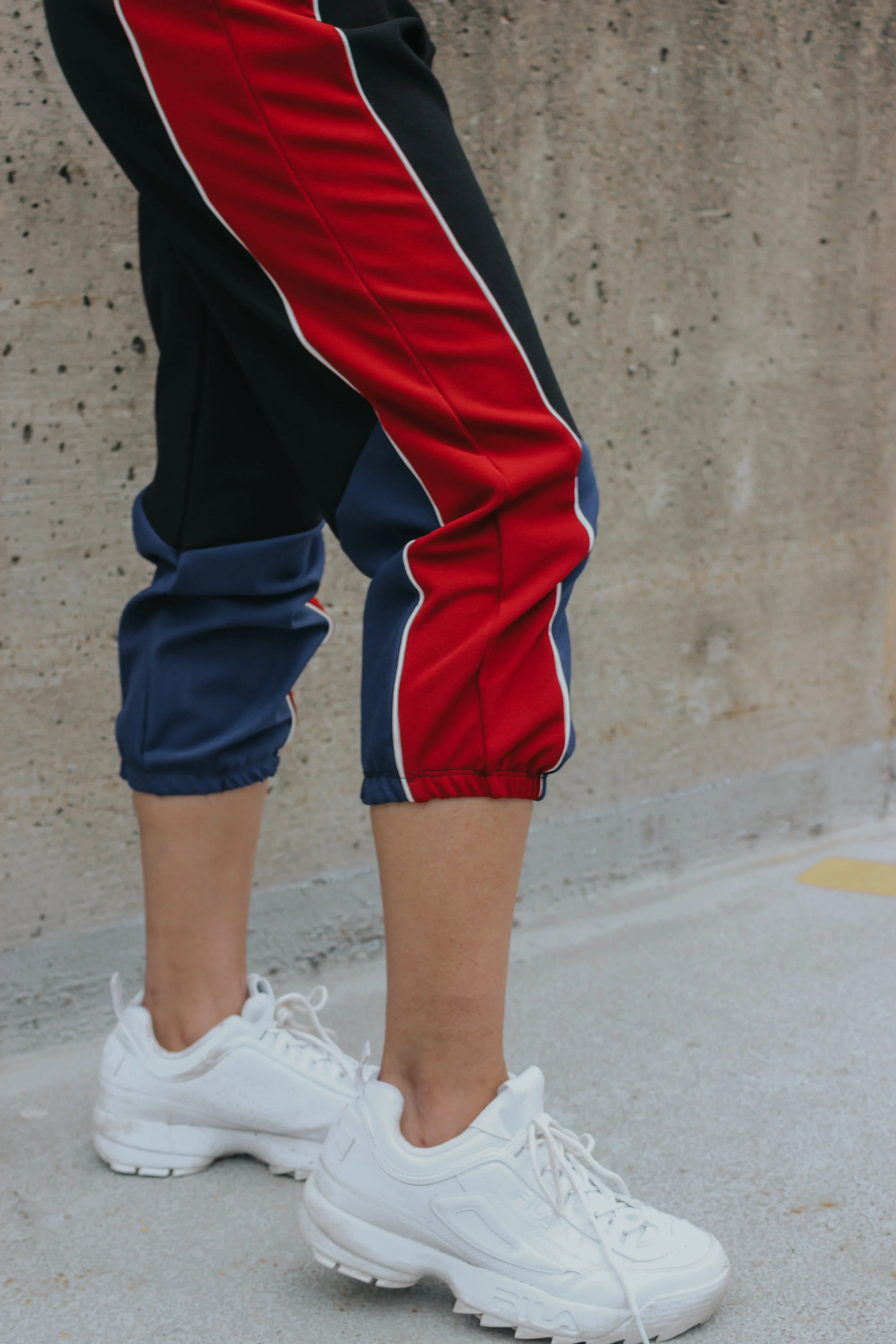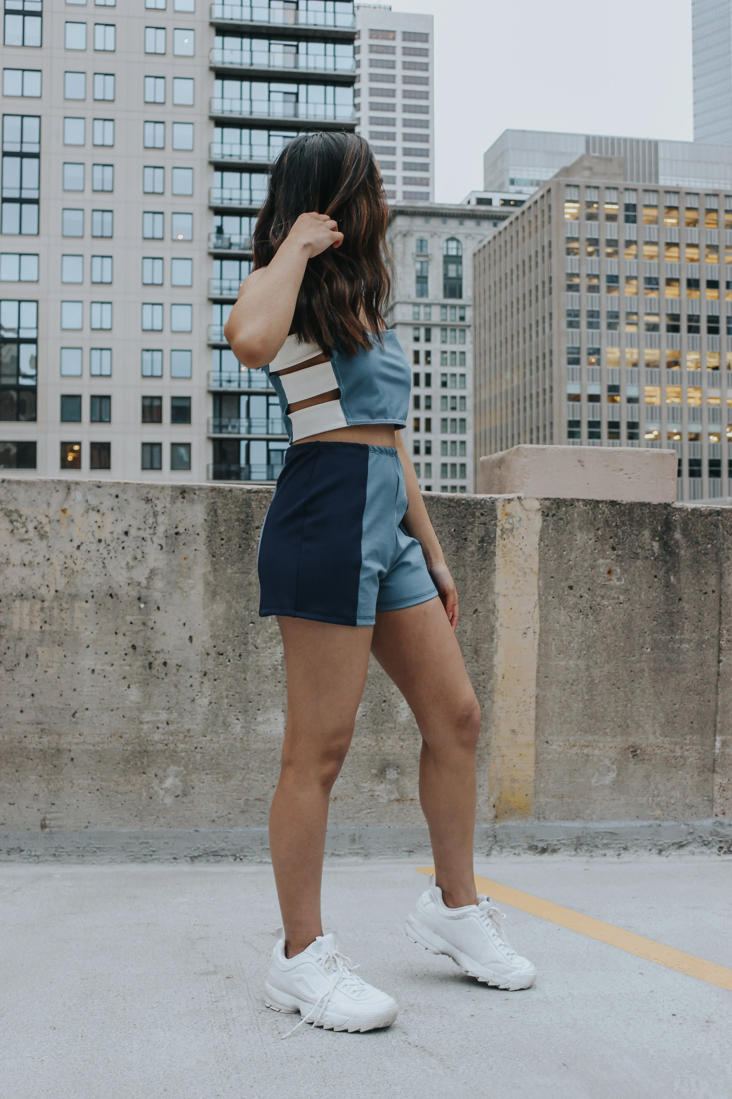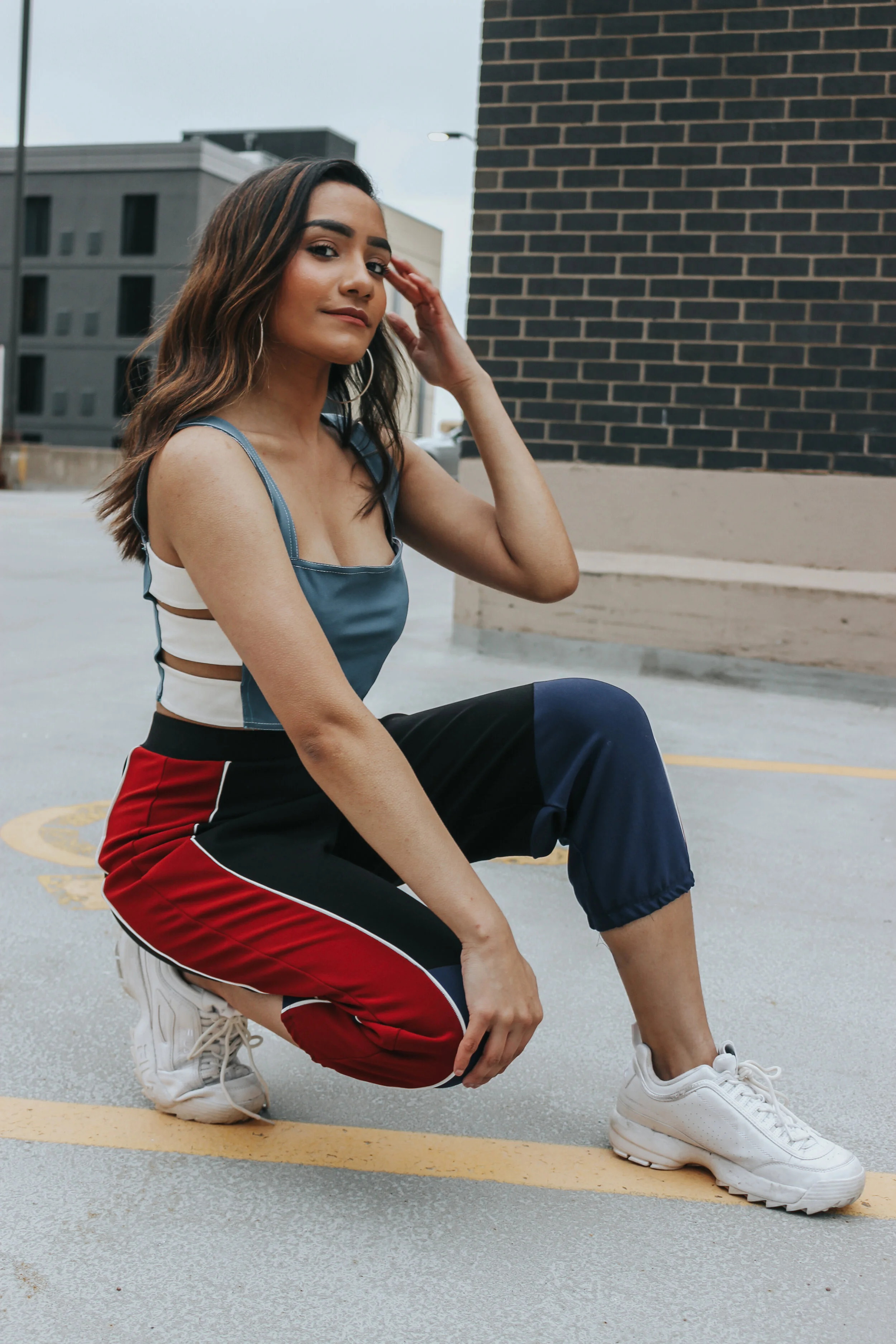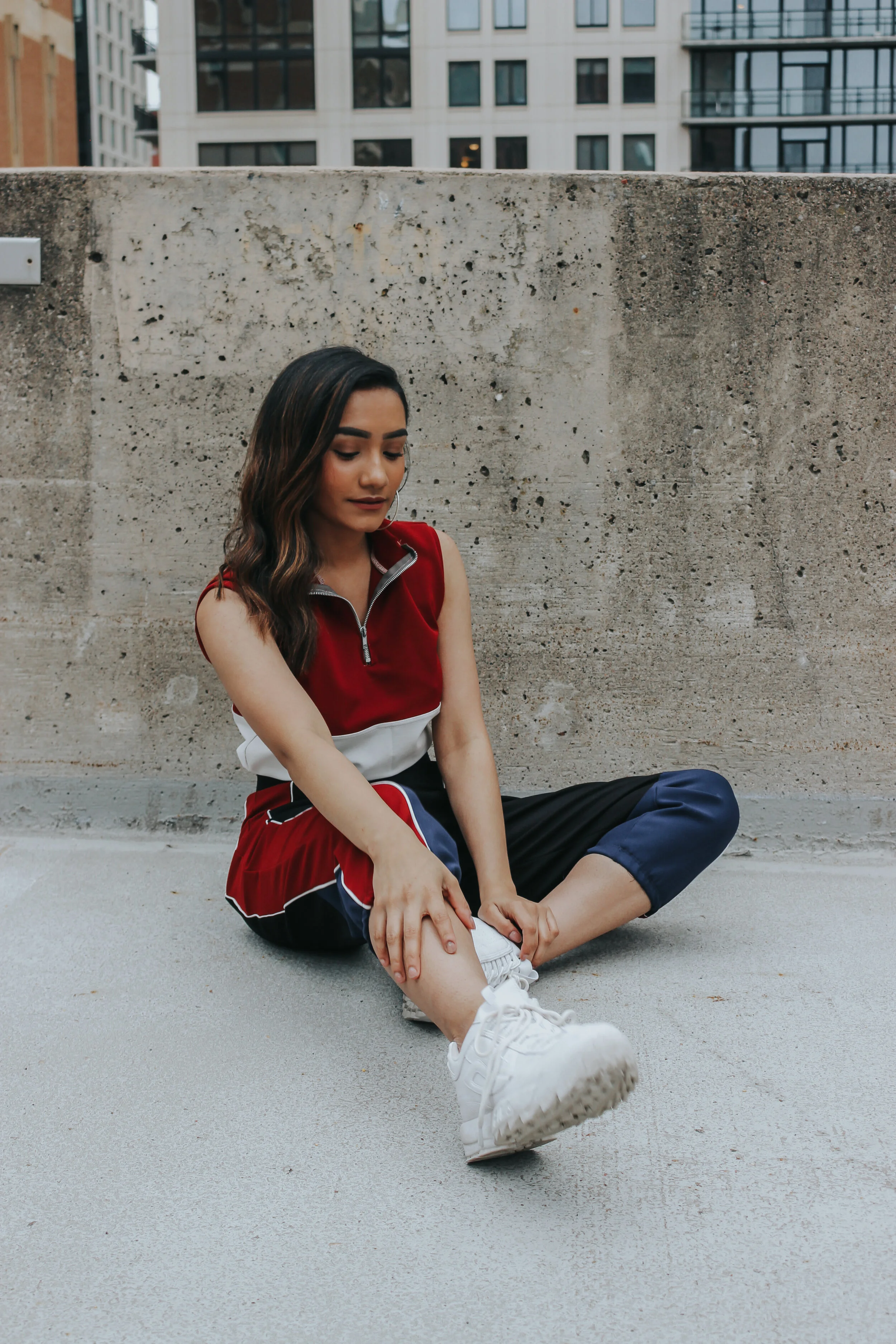My streetwear + athleisure capsule collection was inspired by the design aspect of our athletic surroundings. I really admire the colors and geometry present in sports such as basketball. There is a lot of use of lines and movement in sports. I was inspired to take this athletic vision and turn it into something that is also fashionable and trendy. My target customer is between 18-25 years old. She loves fashion and uses it as a way to express herself. She likes to dress chic and express her style, while being confident and comfortable. She wants clothes that she can dress up or dress down and take from day to night. I used sporty silhouettes with more luxurious and high quality fabrics to add to the streetwear and athleisure aspect of the line!