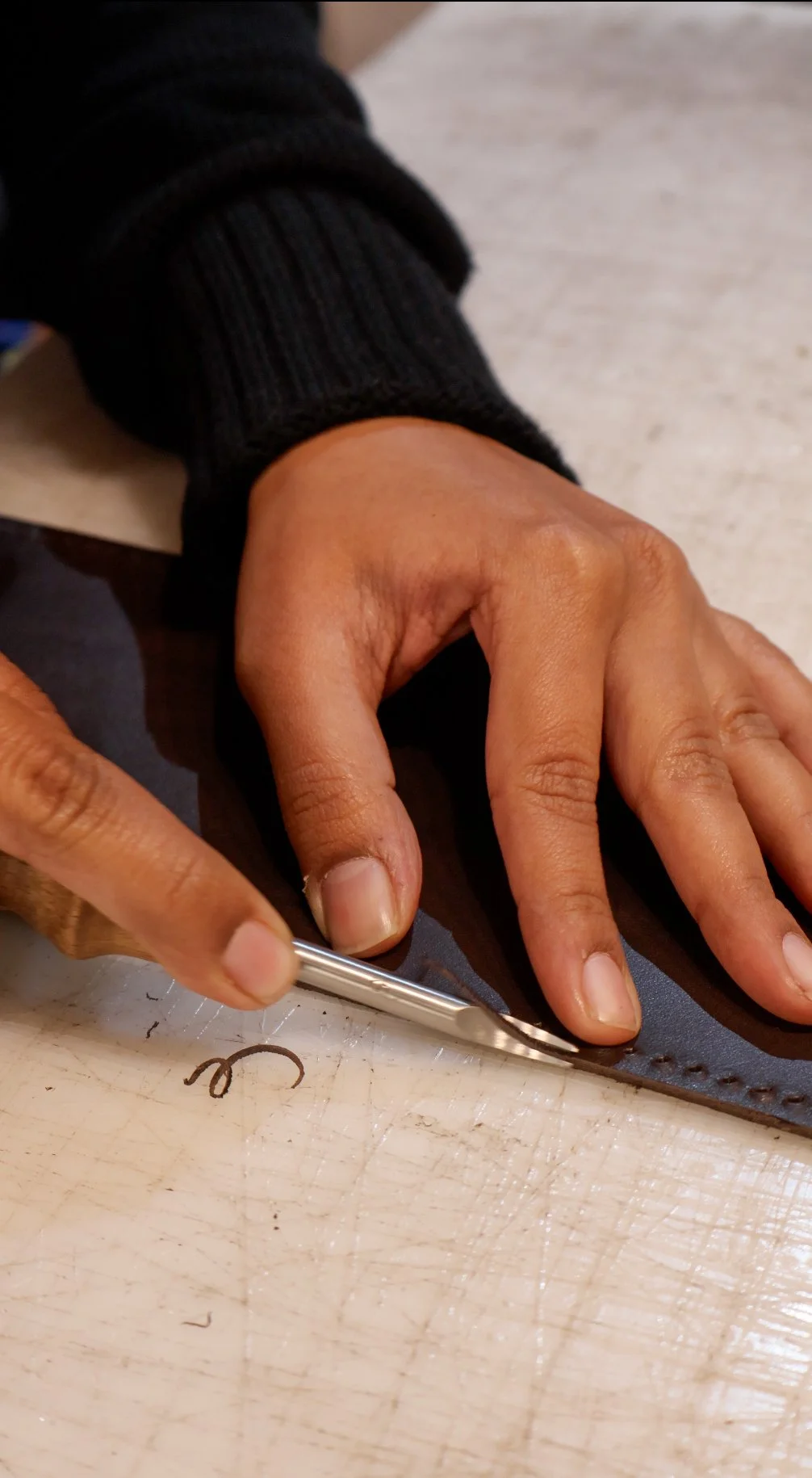 Patterning + Creating the Paper Prototype Cutting + Prepping the Leather & Suede Hand stitching + Assembling the Bag Final Product